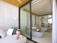 Perfectly positioned on the pearl-white beach, these villas live up to their name – a tropical hideaway surrounded by lush palms caressed by the ocean breeze. High-ceilings and rustic wood furnishings are complemented by cooling stone elements, glowing in the sunlight. Relax on the ample patio in beachfront bliss, or soak in a warm bath with undisturbed views of the ocean.