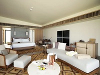 Immerse yourself in the tropical lush with the resort’s Beach Villas. Nestled on the pristine beach, these sanctuaries of solace guarantee complete privacy. The 120-square-metre beach villas feature glass walls, organic wood décor and natural stone furnishings. Lounge outside on the plush sunbeds or opt for an aroma therapeutic bath, in your sanctuary of timeless elegance.