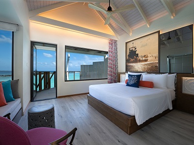 Lively, comfortable, and full of appeal – these two bedroom and two bathroom villas are in the heart of Ailafushi Island. They feature modern amenities, smart storage, comfy furniture, and contemporary décor. The chic master bedroom is linked to a children’s bedroom to suit family life. The storybook children’s room has a bunk bed and playfully decorated ambiance to delight kids and make them feel at home.