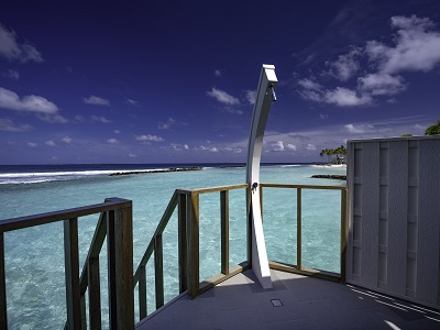 Stretching into the dazzling lagoon are the water villas accessed by a wooden jetty. Each overwater retreat is shaped like a traditional Maldivian Boat – a ‘Dhoni’, creating a feeling of an intimate romantic hideaway. Relax on the private deck or step down the staircase to enjoy a refreshing swim in the warm water which laps gently against your villa.